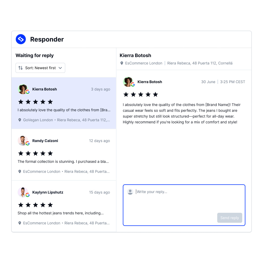 Reply to Google reviews on multiple locations from one place.