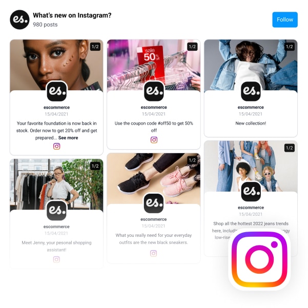 Display an entire UGC social media wall and tag photos with your products, thus creating a social e-commerce experience on your website.